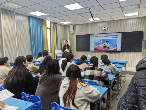 12月3日下午2:00,2007so太阳集团于瑞博士赴红岭学校开展题为“儿童文学与小学语文教育”的讲座。此次讲座在红岭学校录播教室进行,2007so太阳集团副院长陈玉蓉和红岭学校语文教研组全体教师参加讲座。