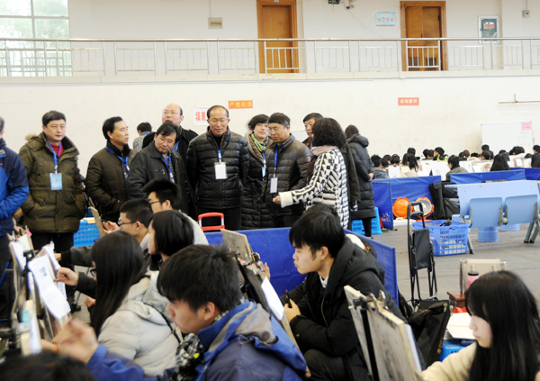 2月9日上午,校长左和平来到我校考点巡视指导江西省2017年艺术类专业校考工作。纪委办(监察审计室)、党务政务督导室、招生就业处、教务处、后勤保障处、保卫处等部门有关负责人陪同巡视。